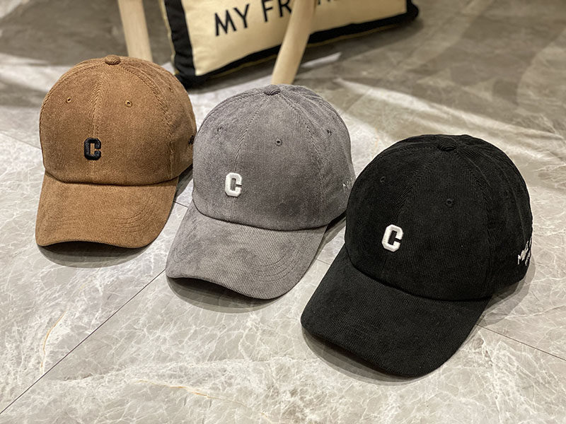 柔らかな風合いのコーデュロイ風素材を使用したメンズ キャップです。 フロントに施されたアルファベット刺繍がさりげないアクセントになり、シンプルながらもこなれた印象を演出します。 深めのツバが日差しをしっかりガードし、カジュアルコーデに取り入れやすいデザインです。 ベースボールキャップならではの調節可能なバックストラップで快適なフィット感を実現し、普段使いから休日のお出かけまで幅広く活躍します。